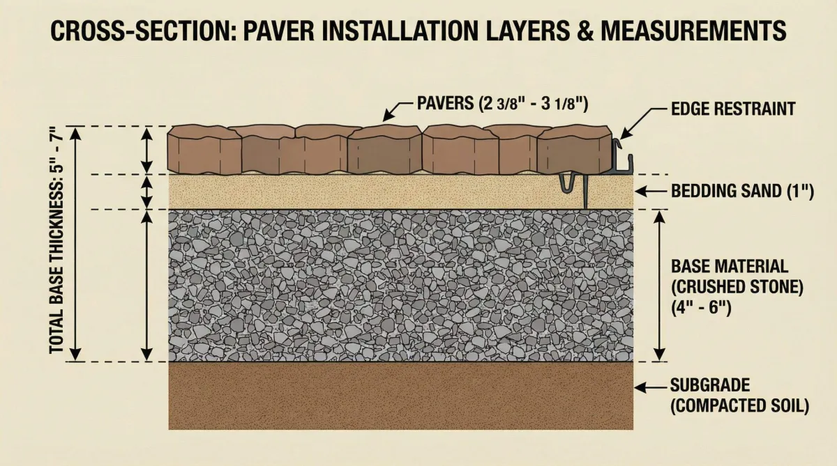 Proper excavation and base preparation are essential for long-term durability and to prevent sinking or shifting over time.